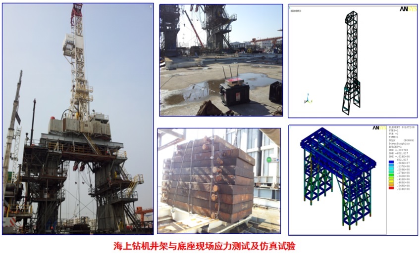 实验室在陆上与海洋石油装备、结构的应力/振动/损伤等综合测试技术方面、在实测数据与模型修正相结合的强度/稳定/寿命等仿真综合评价方法达到国内领先水平。20多年来,实验室在全国陆上各大油田及渤海、东海和南海等海上油田共完成占全国70%以上的石油钻机修井机检测任务,为确保石油钻井修井生产安全起到了可靠的保证,给油田带来了显著的经济效益。