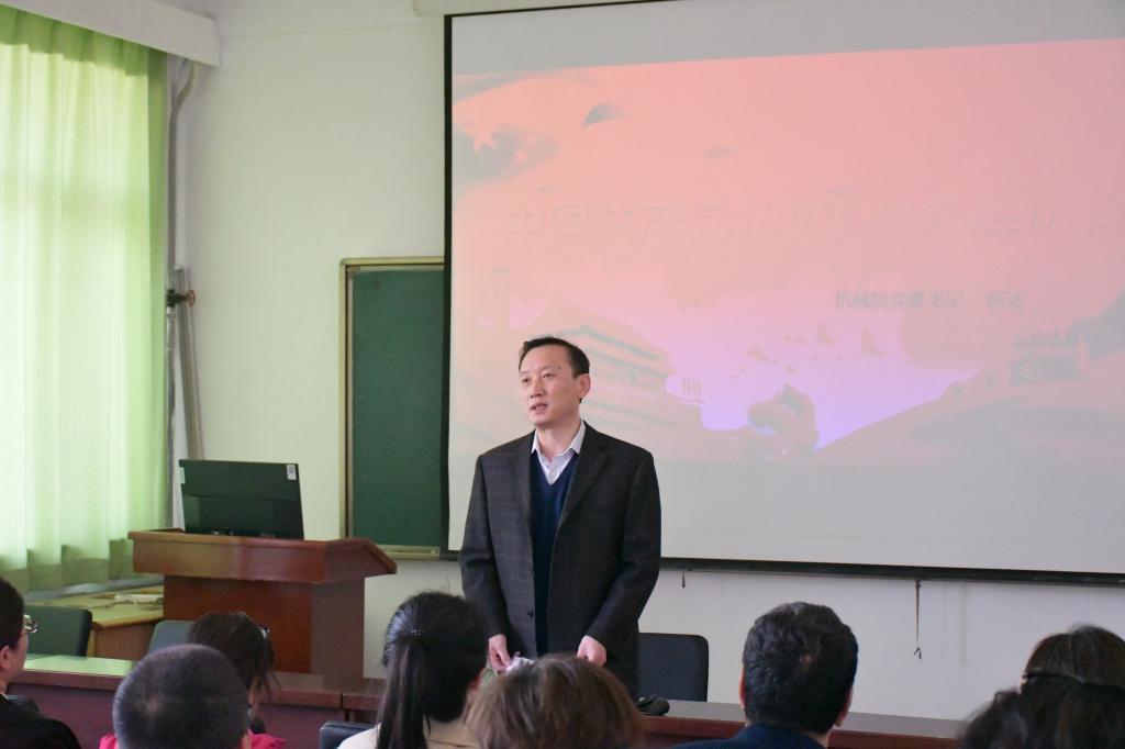 根据学校党史学习教育实施方案的相关要求,为进一步推动机械院党史学习教育深入开展,4月21日,机械院党委书记杨波为党员师生上了一堂题为“中国共产党100年的光辉历程”的专题党课。