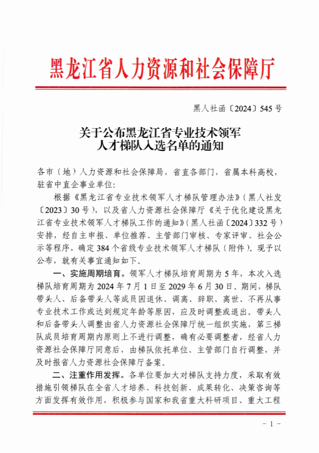 qmh球盟会亚博获评3个黑龙江省专业技术领军人才梯队